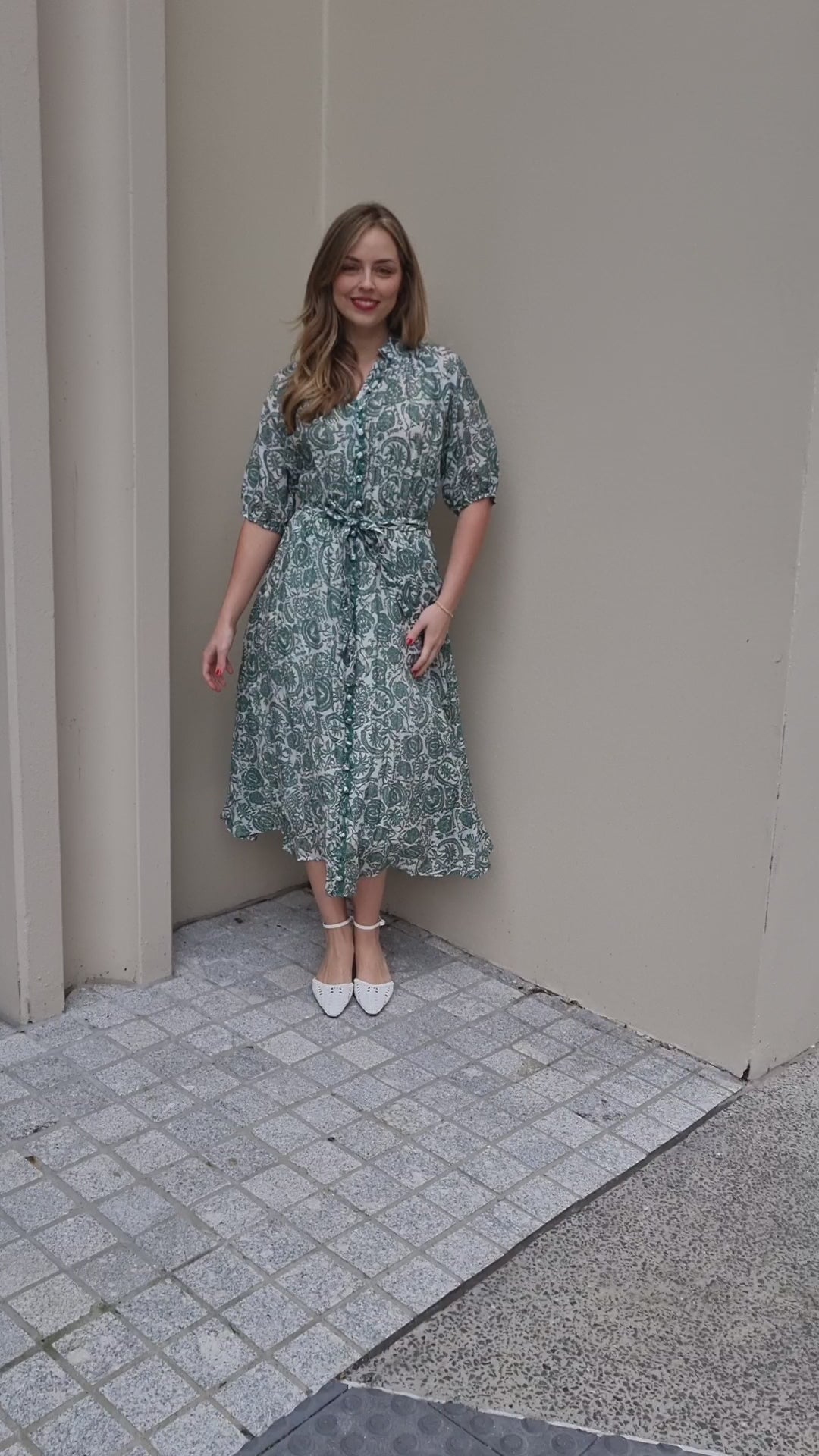 Get ready for any event with The Vera Dress - a midi-length frock in a chic teal and white paisley print. It boasts a collared neckline, three-quarter sleeves, and a button front closure. A self-tie belt cinches your waist for a feminine touch. The lightweight fabric drapes beautifully, ensuring comfort and versatility. Keep it cool and casual with this effortlessly stylish dress.