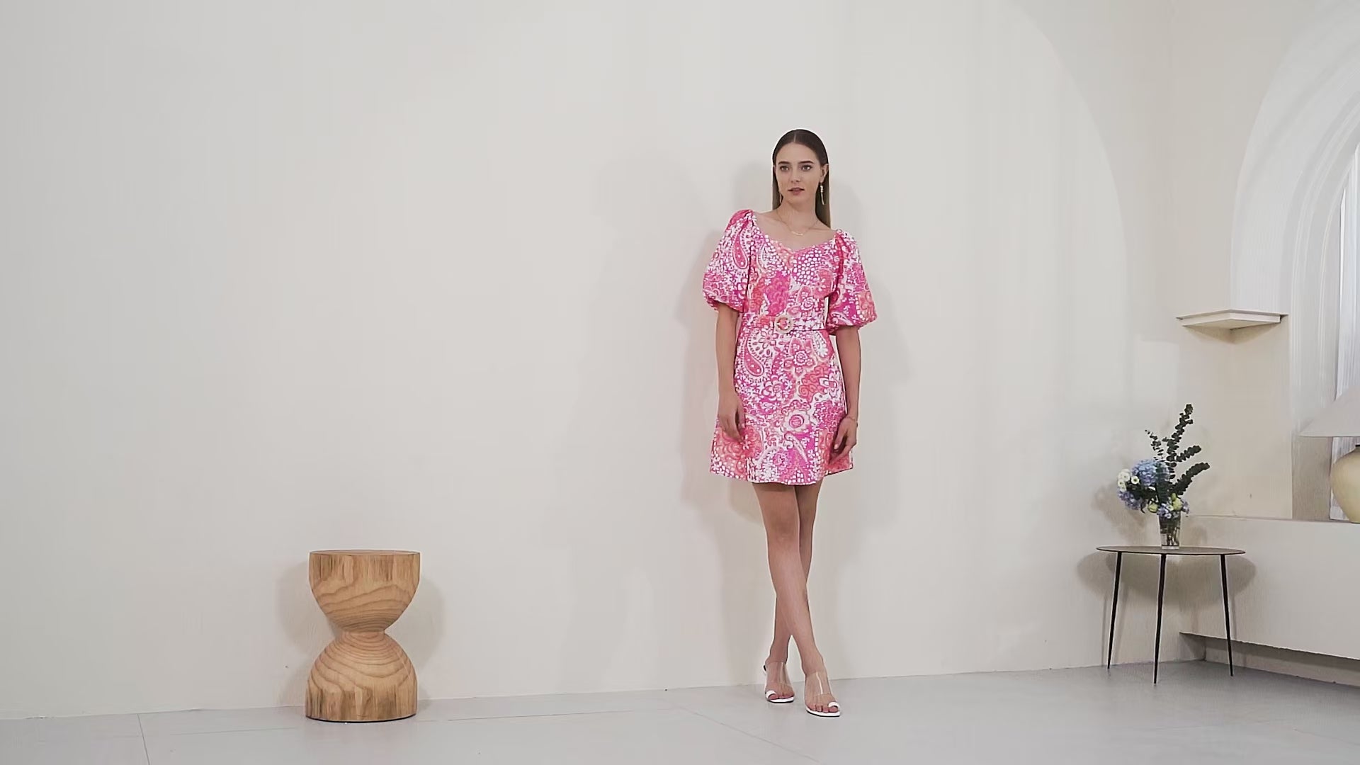 A go-to piece for casual occasions and Sunday brunch. Features intricate psychedelic floral patterns of bright hues. Finishing touches include a waist belt.