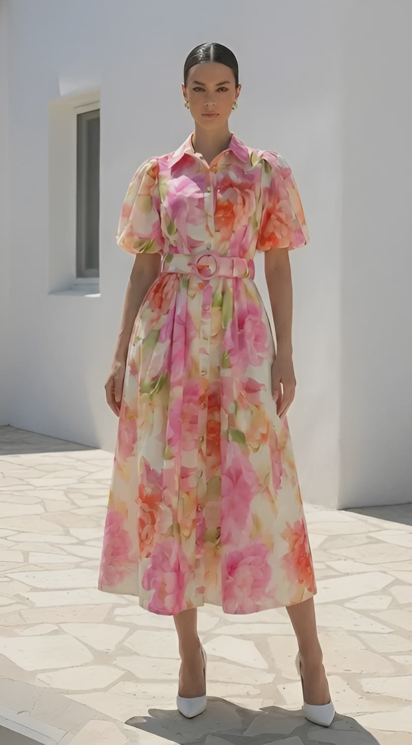 Embrace effortless elegance with the Charlotte Dress in a captivating pink floral design. This versatile piece seamlessly transitions from casual daytime outings to evening gatherings, offering a flattering silhouette that celebrates your natural beauty. The delicate floral print brings a fresh, feminine touch to your wardrobe, while the thoughtful construction ensures comfort throughout the day. Perfect for those who appreciate timeless style with a contemporary edge, the Charlotte Dress is an investment piece that pairs beautifully with your favorite accessories and works across multiple seasons.