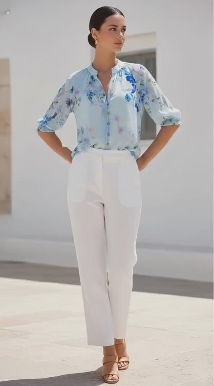Elevate your everyday wardrobe with the Grace Blouse in a timeless blue. This versatile piece seamlessly transitions from office to weekend, offering a polished silhouette that flatters every frame. Crafted for comfort and style, the Grace Blouse pairs effortlessly with tailored trousers, denim, or skirts. The classic blue hue ensures endless styling possibilities while maintaining that sophisticated edge you're looking for. Perfect for those who refuse to compromise on quality or elegance.
