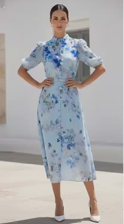 Effortlessly feminine with the Grace Dress in Blue. This versatile midi piece transitions seamlessly from casual to refined—pair it with strappy sandals and a sunhat for leisurely picnics, or style it with block heels and a clutch for evening occasions. The flowing silhouette celebrates warm weather while flattering every frame, making it an essential addition to your wardrobe. Whether you're enjoying long lunches or special moments, this dress elevates every outing with understated sophistication and timeless charm.
